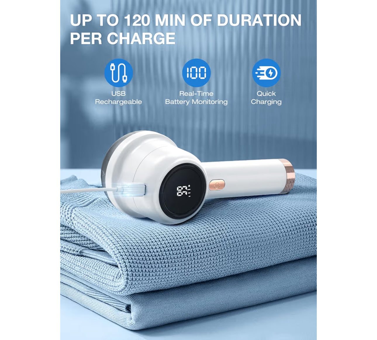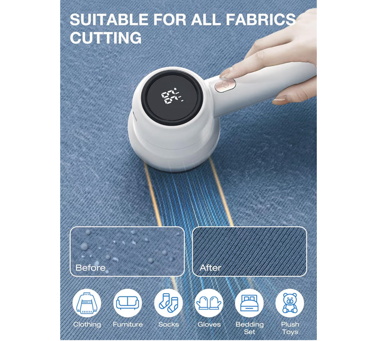 ELECTIC FABRIC SHAVER,RECHARGEABLE LINT REMOVER WITH 6-BLADE AND LED DISPLAY FOR CLOTHES,UPHOLSTERY, AND FURNITURE-WHITE-BLACK $29.99 USD